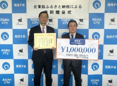 当金庫は、地域との連携を図り、地域経済の活性化に努めるため、当金庫の営業店がある自治体へ寄附を実施しております。 今般、我孫子市へ寄附を実施したことから、下記のとおり贈呈式が行われました。