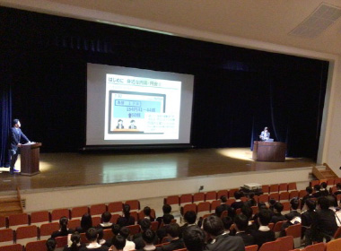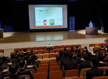 令和8年2月12日、東海大学付属浦安高等学校中等部で3年生114名が参加した、「金融・防犯・防災教育講義」へ職員を派遣しました。 本講義は、平成25年から金融をはじめ防犯や防災に対する生徒の知識向上を目的とし、今年度で13回目となります。
