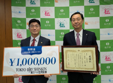 当金庫は、地域との連携を図り、地域経済の活性化に努めるため、当金庫の営業店がある自治体へ寄附を実施しております。 今般、松戸市へ寄附を実施したことから、下記のとおり贈呈式が行われました。